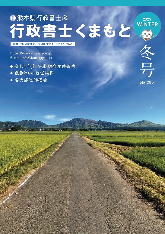 なお、紙媒体の発送に先立ちまして、会報誌「行政書士くまもと」最終号(第295号)のPDFデータを令和7年12月28日付で熊本県行政書士会ホームページに掲載いたしました。